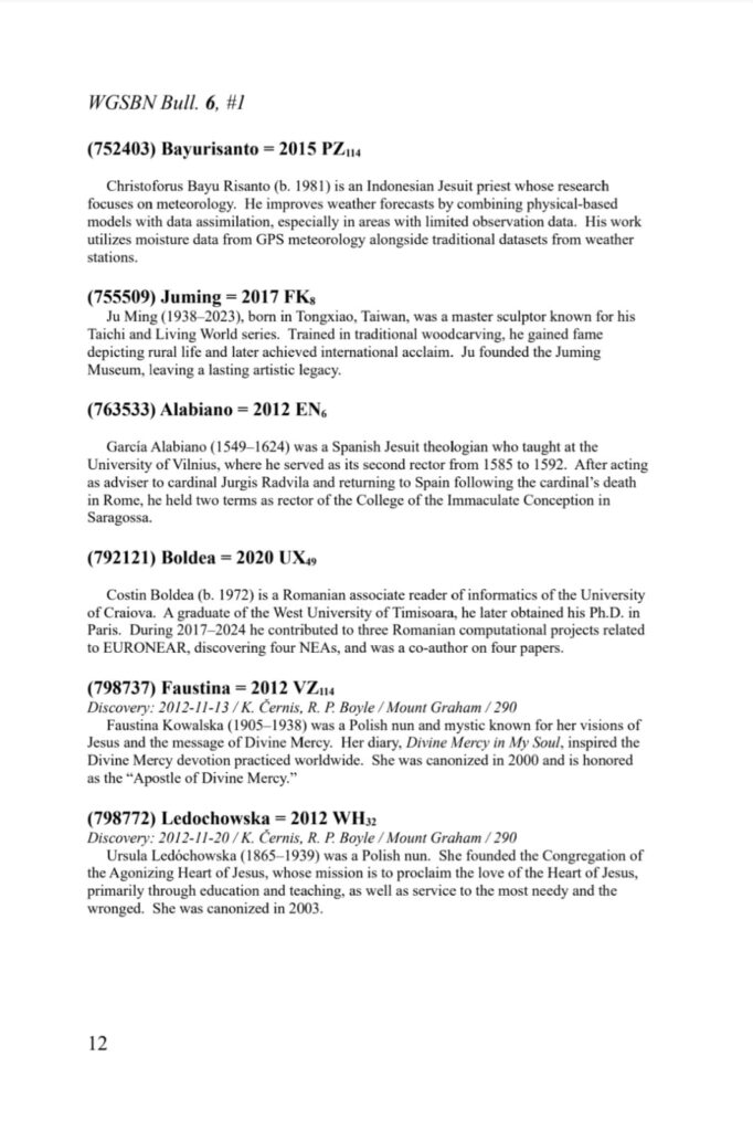 Dalam sebuah publikasi resmi Working Group for Small Body Nomenclature (WGSBN), tercantum nama (752403) Bayurisanto = 2015 PZ₁₁₄. Nama ini merujuk pada Romo Christoforus Bayu Risanto, SJ, seorang imam Yesuit asal Indonesia yang kini berkarya sebagai peneliti di Observatorium Vatikan (Specola Vaticana).