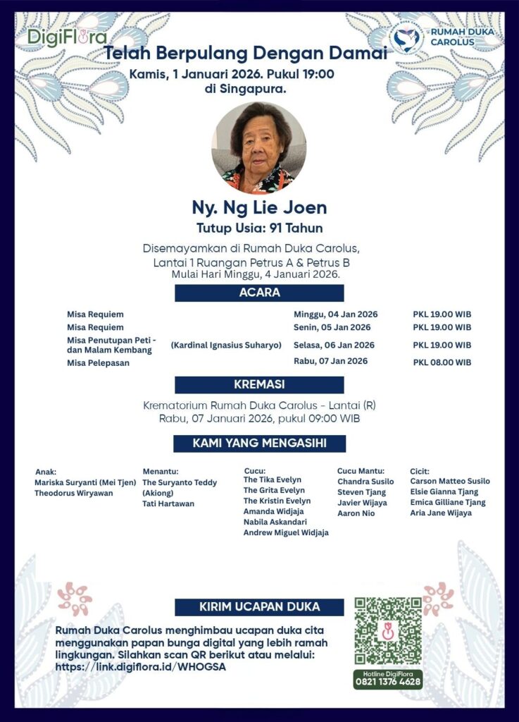 RIP Ny. Ng Lie Joen, Ibunda Theodorus Wiryawan